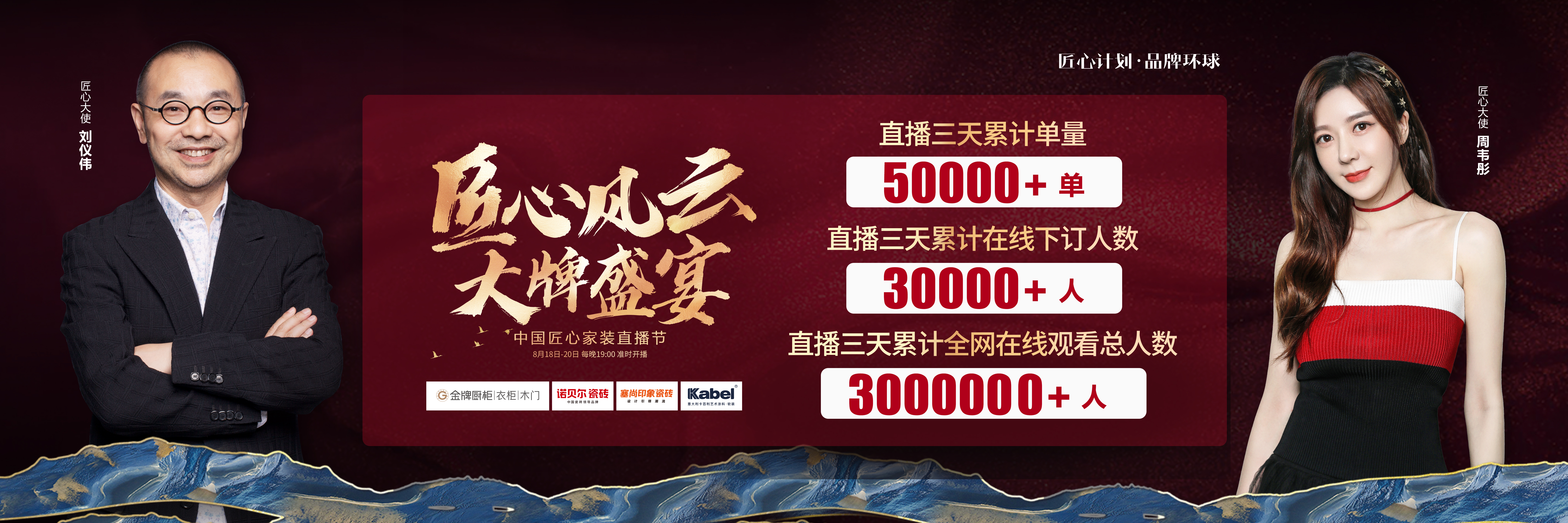 由EVO视讯厨柜、诺贝尔瓷砖、塞尚印象瓷砖、卡百利艺术涂料联合缔造,创赢科技系统支持全案营销执行的“匠心风云 大牌盛宴”中国匠心家装直播节于8月20日圆满落...
